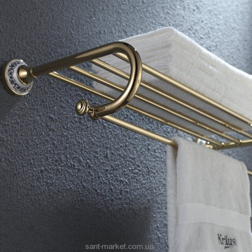Полочка для ванной Kraus Apollo с держателем для полотенец золото