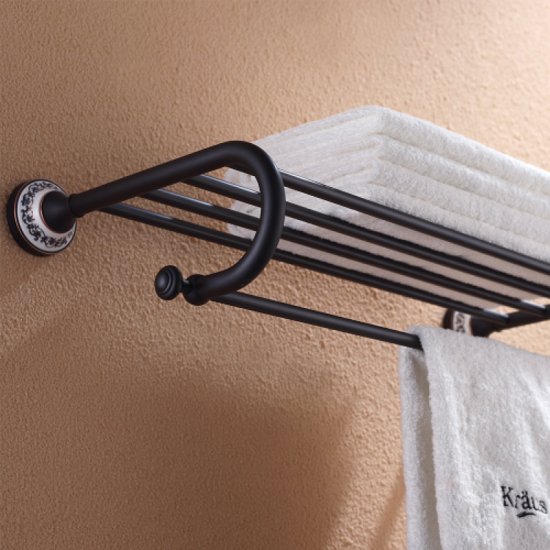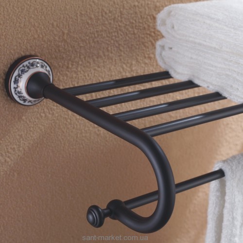 Полочка для ванной Kraus Apollo с держателем для полотенец тёмный шоколад KEA-16542-ORB