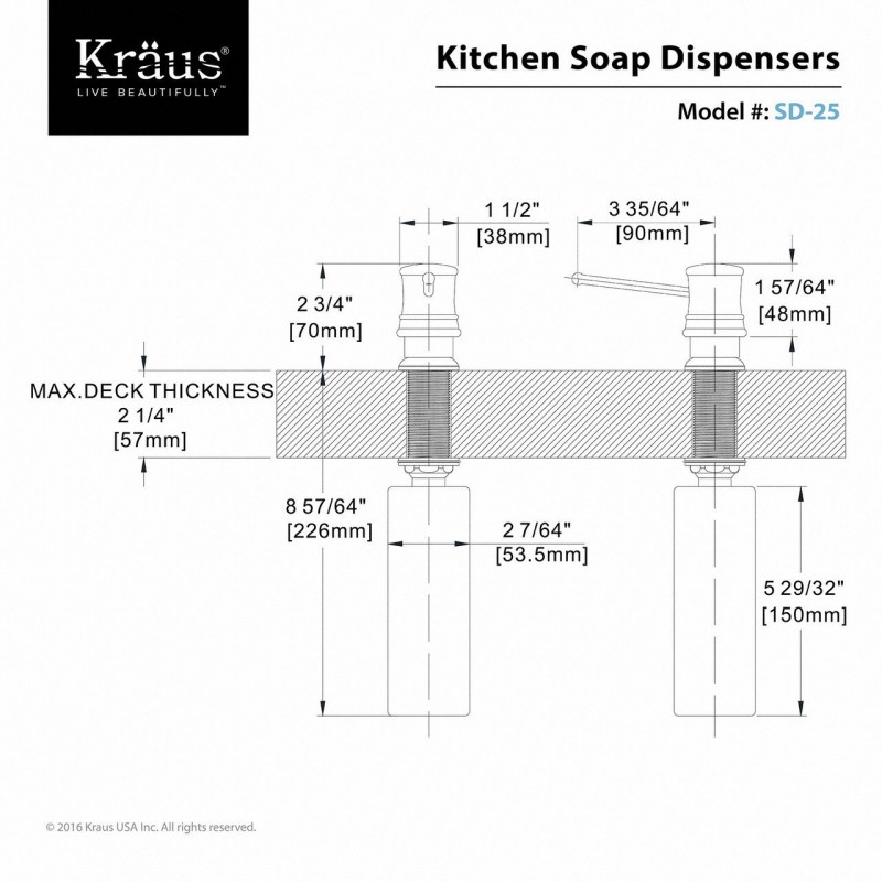 Диспенсер для жидкого мыла Kraus нержавеющая сталь/пластик SD-25 (P)