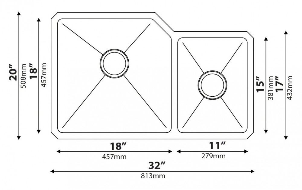 Мойка для кухни асимметричная Kraus Precision под столешницу нержавеющая сталь хром KHU123-32