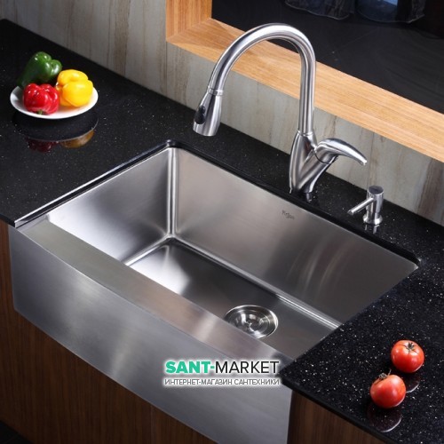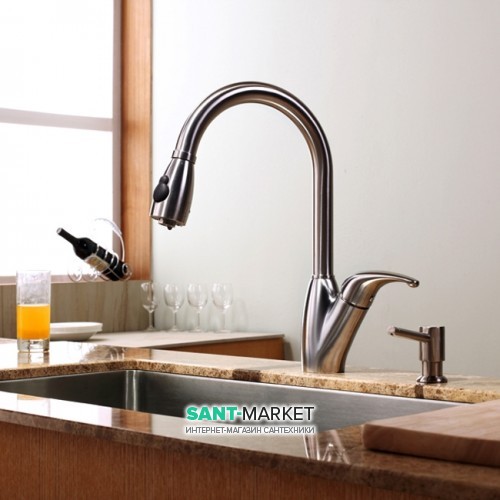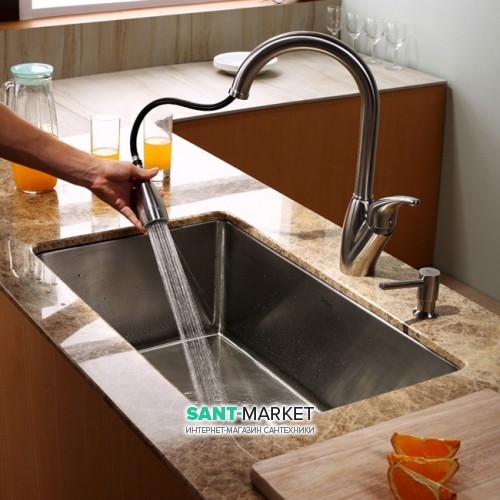 Смеситель для кухни с выдвижной лейкой Kraus однорычажный нержавеющая сталь KPF-2120