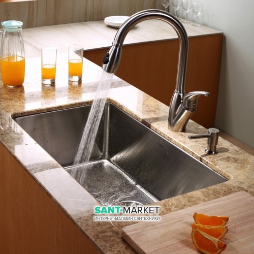Если Вы подбираете кухонный кран, в комплектации которого предусмотрена выдвижная лейка, Вам стоит купить смеситель KRAUS KPF-2110 по очень привлекательной цене.