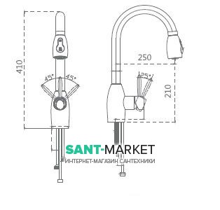 Применение плавных линий и удобного дугообразного излива позволяет получить универсальный продукт. А дополнительная комплектация выдвижной лейкой с двумя режимами подачи водной струи (стандартный поток и распыление) гарантирует комфортное выполнение различных манипуляций с водой в рабочей зоне кухни.
