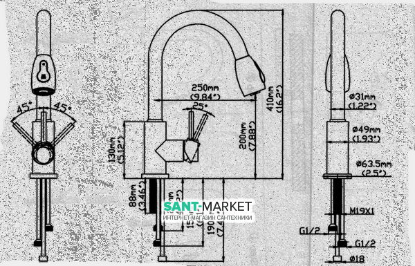 Габариты кухонного смесителя KRAUS KPF-2135: