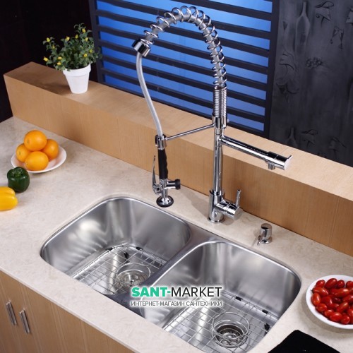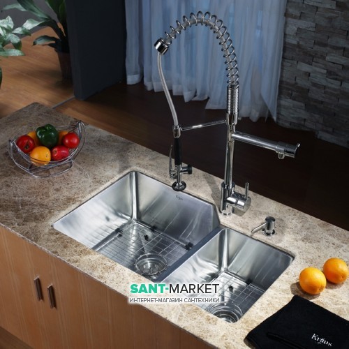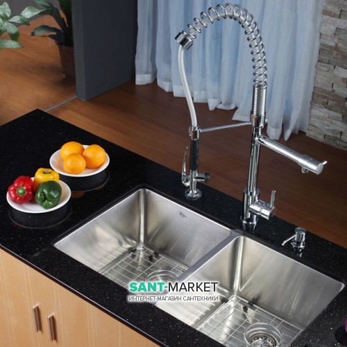 Пружинный двойной смеситель KRAUS KPF-1602CH - настоящая находка для функциональной кухни за счет использования дополнительных опций, позволяющих сделать рутинную работу на кухне более комфортной.