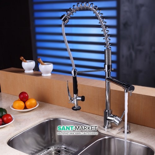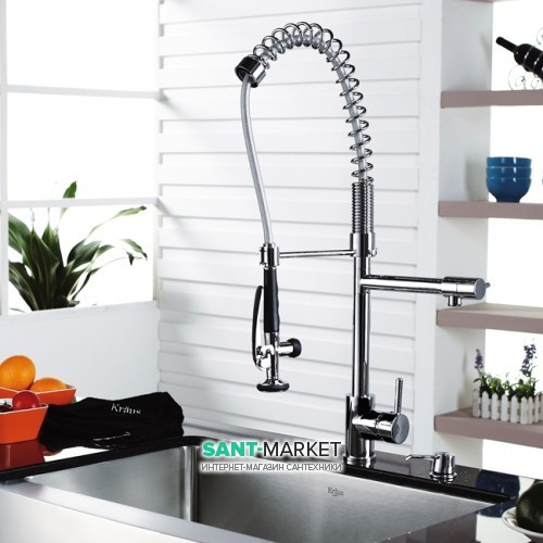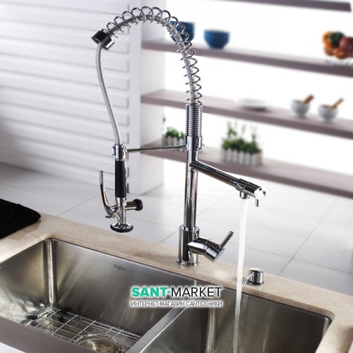 Смеситель для кухни с выдвижной лейкой Kraus однорычажный с высоким изливом KPF-1602
