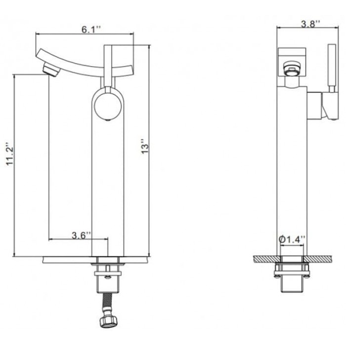 У смесителя один общий рычаг для управления и температурой и напором воды. Все детали которые потребуются для установки уже идут в комплекте: шланги горячей/холодной воды. Рабочее давление в кране до 60 Па, а это говорит о силе напора.