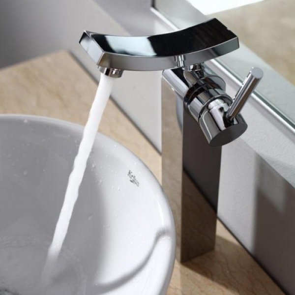 Смеситель для умывальника с уникальным дизайнерским решением от фирмы Kraus, давно зарекомендовавшей себя как один из лучших производитель американской сантехники премиум-класса. Плавные линии и грамотно выверенные размеры, высота 330 мм, придают ванной уникальный вид.