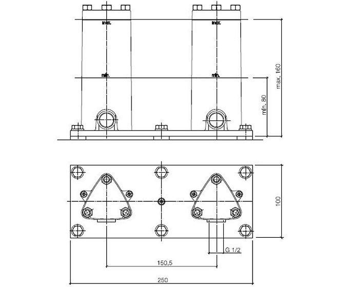 1) Крепление для напольного смесителя Dornbracht напольный скрытого монтажа хром