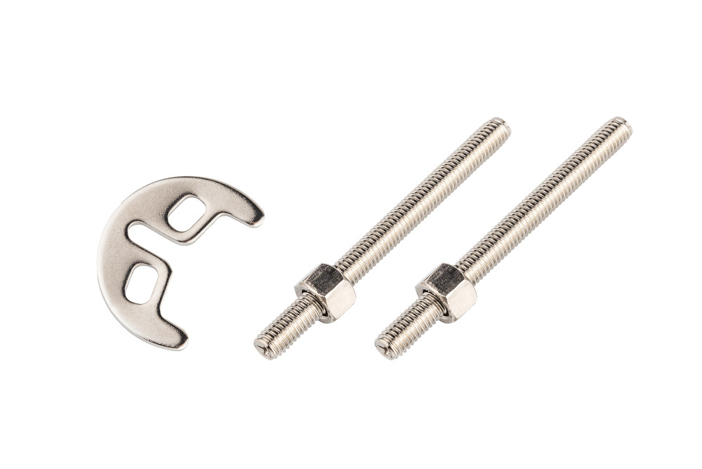 Крепление для смесителя Kroner KRM - С18 с двумя шпильками подойдет для гибкого соединения. Используется для смесителя. Оно состоит из двух латунных шпилек и фигурной пластины с двумя отверстиями. Имеет брашированную поверхность.