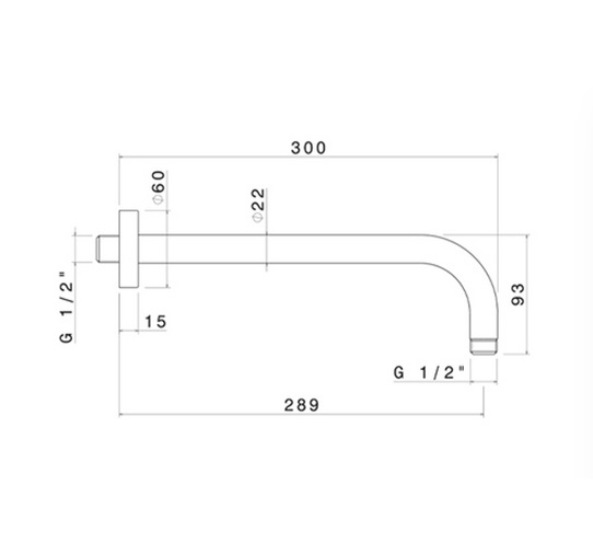 1) Кронштейн для верхнего душа Vema Wellness steel 30 см нержавеющая сталь