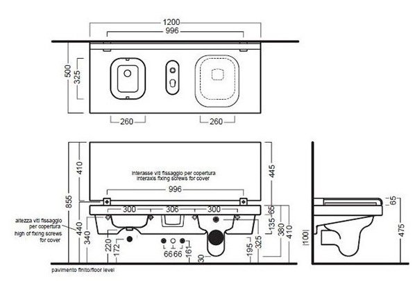 - специальный кронштейн справа / слева для установки на стену из гипсокартона (не менее 15 см), включая трубопровод