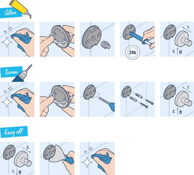 - возможность крепления изделия к стене с помощью клея GROHE QuickGlue A1 (41127000) – приобретается отдельно