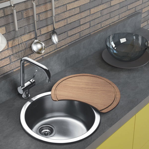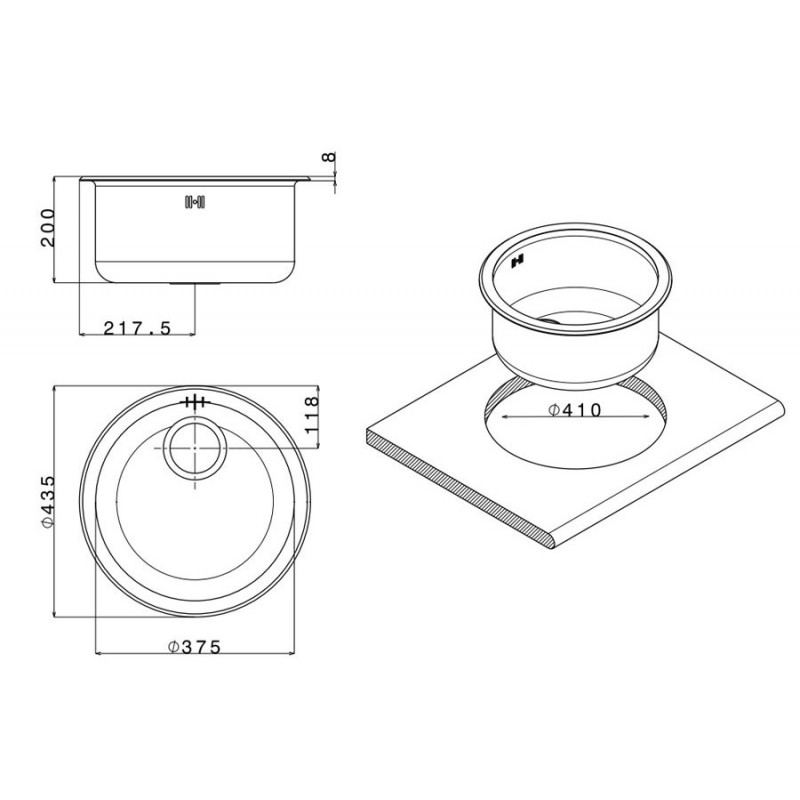 Кухонная мойка круглая Apell Circum с донным клапаном и сифоном нержавеющая сталь лен