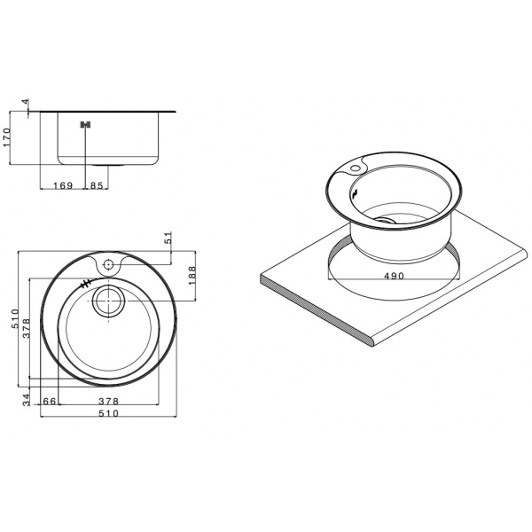 - Размеры мойки (ШхГ): 510 х 510 мм