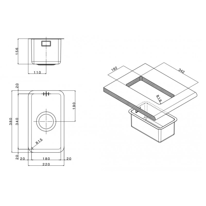 - Тип монтажа: под столешницу