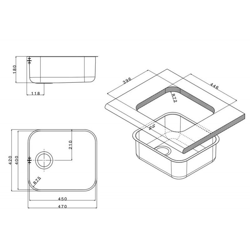 - Размеры мойки (ШхГ): 470 х 420 мм