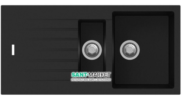 Кухонная мойка прямоугольная двойная Apell Pietra Plus с сифоном гранит черный
