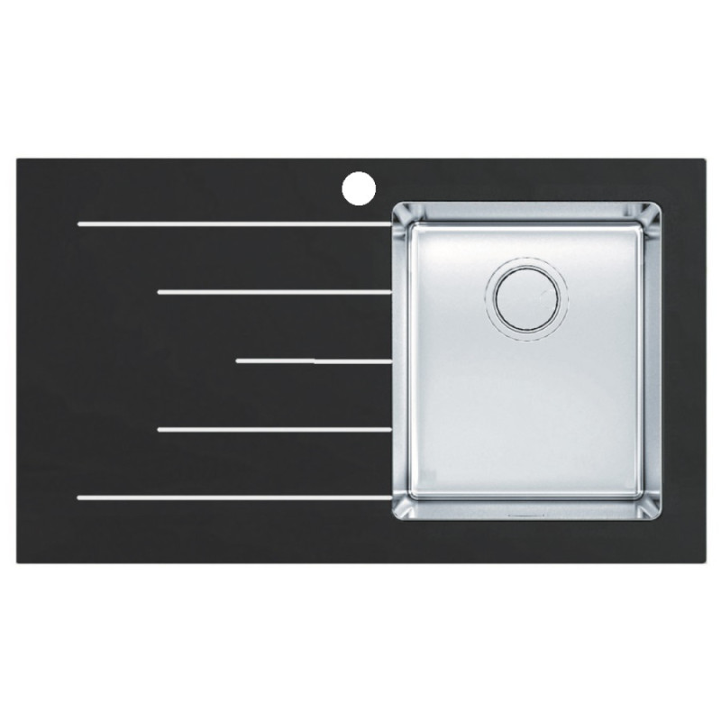 Кухонная мойка прямоугольная фронтальная часть черное стекло pop-up механизм Apell Pura LEFT нержавеющая сталь Brushed PU861ILBC