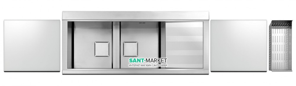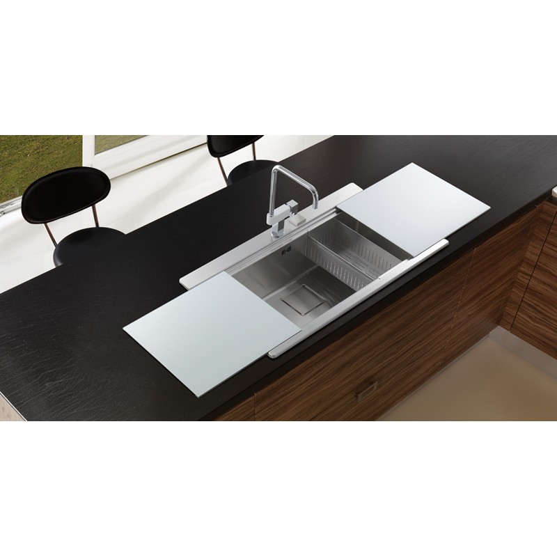 В комплектацию входят две стеклянные панели черного цвета, позволяющие закрыть мойку и смеситель создавая чистую, ровную поверхность.