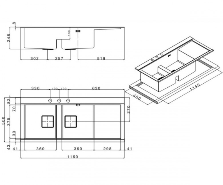 - Размеры мойки (ШхГ): 1160 х 500 мм