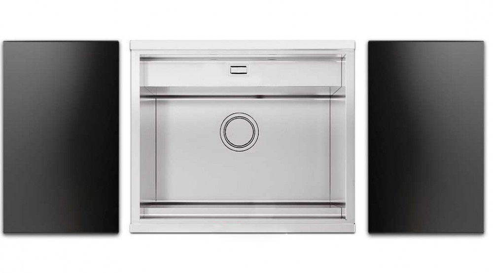 Кухонная мойка прямоугольная с телескопическим смесителем и двумя стеклянными поверхностями Apell Regola нержавеющая сталь