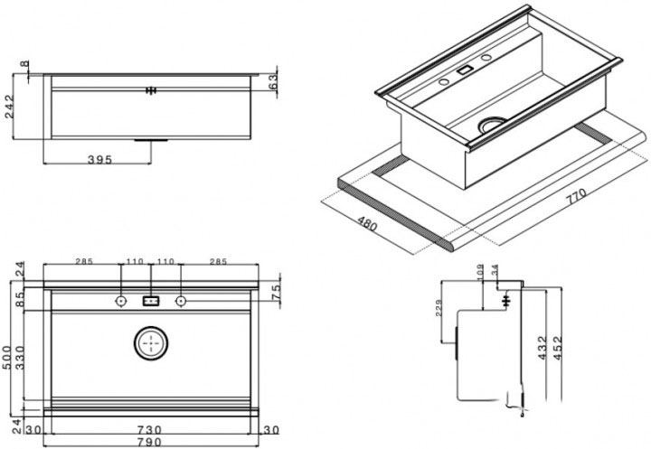 - Размеры мойки (ШхГхВ): 790 х 510 х 242 мм