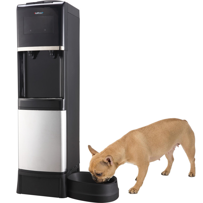 HotFrost V1950N классически выдает горячую и холодную воду. Для животных подаётся вода комнатной температуры прямо в поилку. Умная система подачи позволяет разместить поилку справа, слева или спереди кулера. Съемную тарелку можно мыть как под проточной водой, так и в посудомоечной машине.
