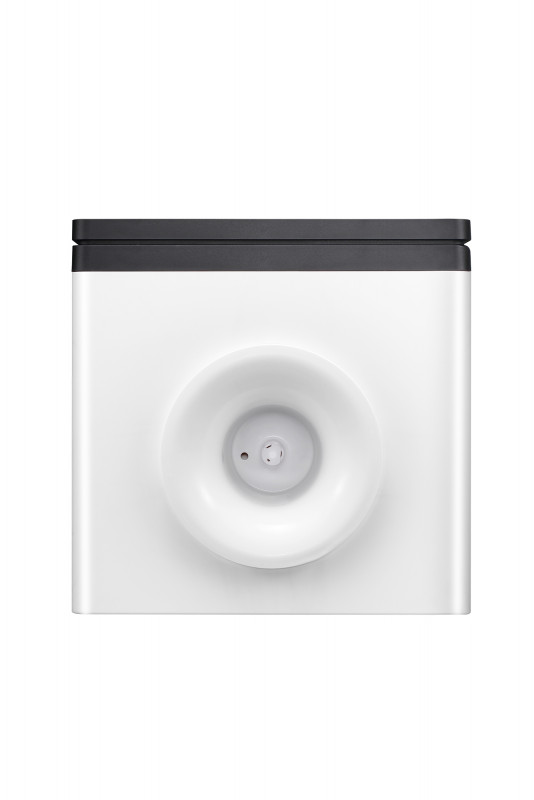 С лицевой стороны все привычные рабочие элементы кулера (краники, каплесборник) скрыты за стеклянной дверцей. Это придаёт, как эстетики устройству, так и дополнительную гигиеническую защиту зоны подачи воды от попадания пыли, бактерий и т.д. Дверца шкафчика снизу также имеет стеклянное покрытие, что в целом делает облик кулера дорогим и стилистически законченным, сродни холодильникам элитных серий.