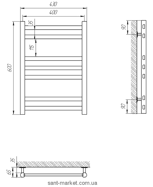 Примечание к полотенцесушителю Laris Кватро П7
