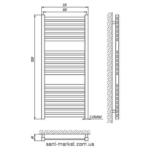 Водяной полотенцесушитель Laris коллекция Солар П лесенка 535x1200х85 хром 71207680