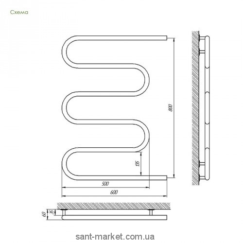 Водяной полотенцесушитель Laris коллекция Змеевик змейка 600х830х60 хром 71207191