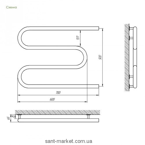Водяной полотенцесушитель Laris коллекция Змеевик М-образный 700х600х65 хром 71207215