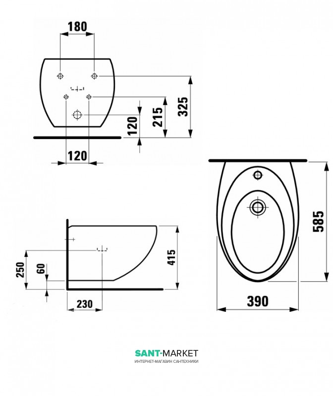 Биде подвесное Laufen коллекция Alessi One 59х39х42 c покрытием LCC H8309714003041