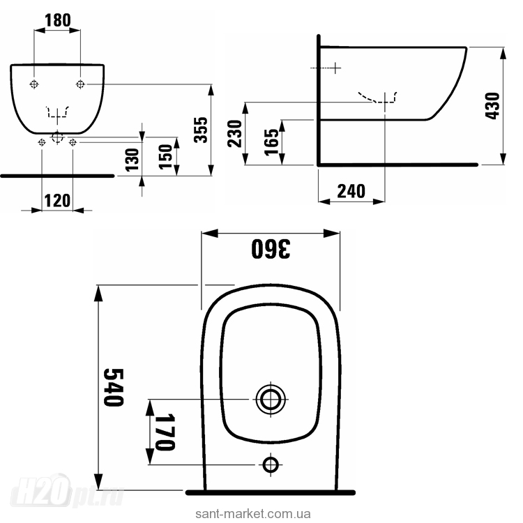 Биде подвесное Laufen коллекция Palomba 54х36х43 с переливом H8308010003041