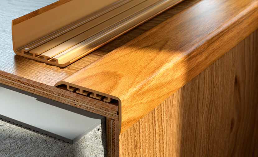 Широкий лестничный профиль С45 предназначен для отделки углов. Тщательно оберегает и украшает cтупени лестниц.