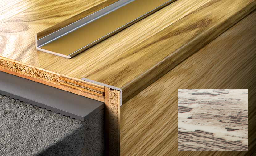 Лестничные профили S01 - идеальная защита углов от механических повреждений. Надёжная защита краёв ступеней и эстетическая отделка лестниц.