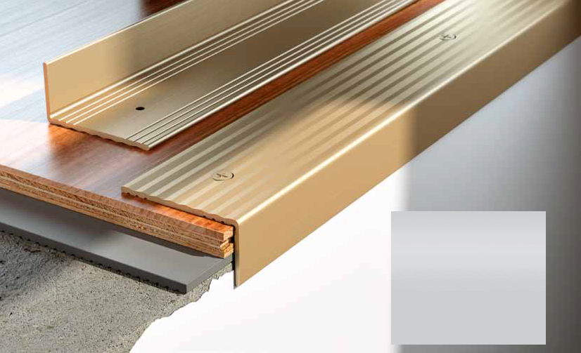 Широкий рельефный профиль S03 гарантирует безопасное использование лестницы. Профиль противоскользящий. Доступный в двух цветах: серебряный и золотой анодированный.