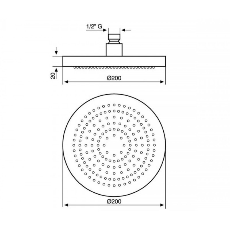 1) Лейка для верхнего душа Emmevi London 200 мм золото