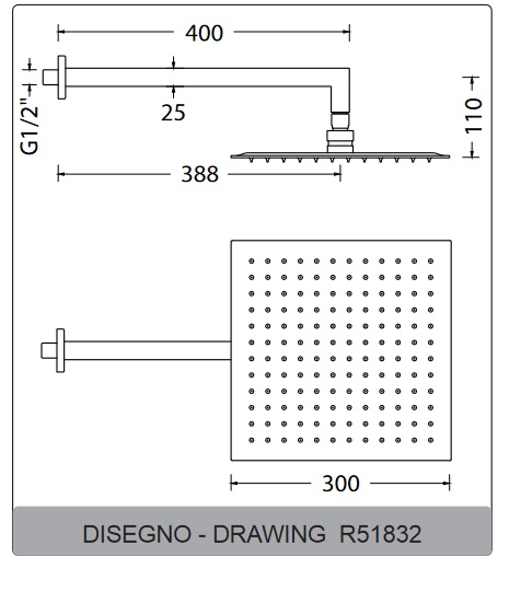 Лейка для верхнего душа Eurorama Wellness 300х300 мм с держателем сталь R51832