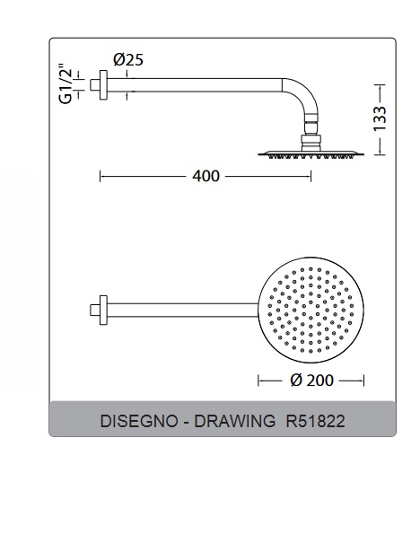 Лейка для верхнего душа Eurorama Wellness 200 мм с держателем сталь R51822