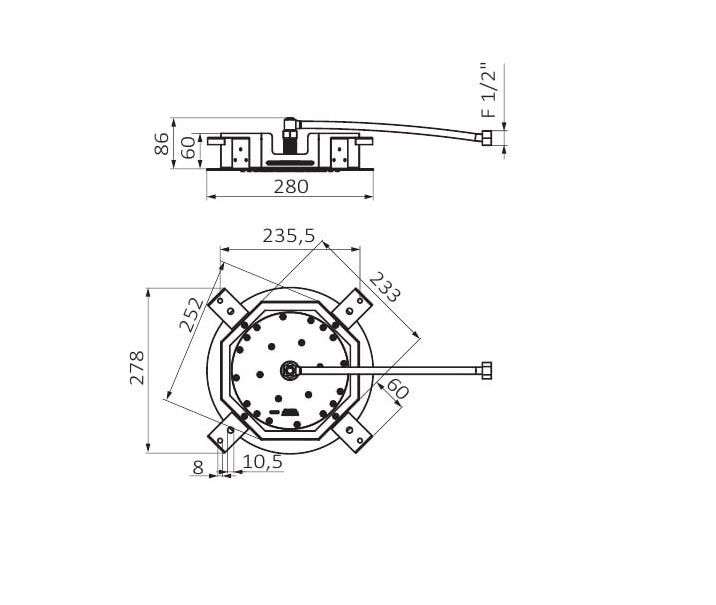1) Лейка для верхнего душа GRB Hidromasaje Eos один режим хром