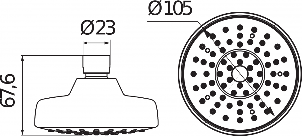 1) Лейка для верхнего душа Jika Rio Ø 105 мм 1 режим хром