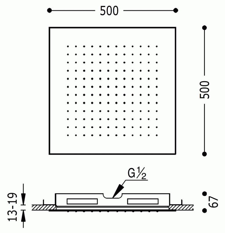 1) Лейка для верхнего душа Tres 500x500 мм квадратная хром