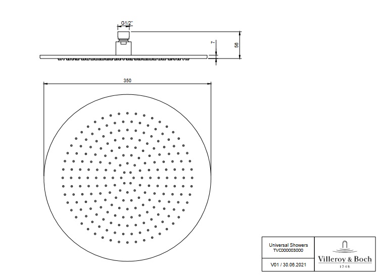 Лейка для верхнего душа Villeroy & Boch Universal Showers ⌀350 мм хром TVC00000300061