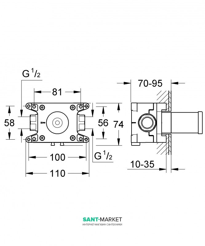 Точки крепления для монтажа перед стеной или стеной-перегородкой