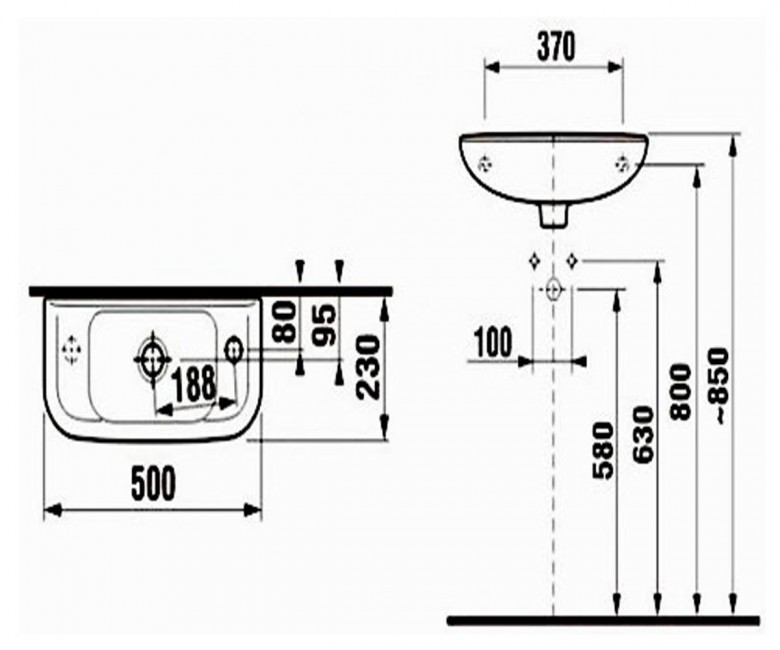 1) Мини-раковина для ванной Jika Deep 50х23 см отверстие слева белый