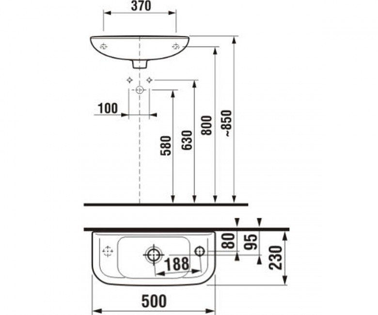 1) Мини-раковина для ванной Jika Deep 50х23 см отверстие справа белый