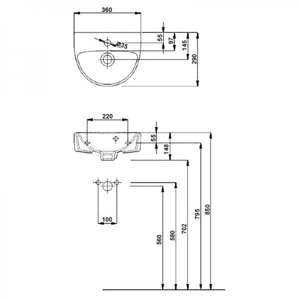 - Умывальник подвесной, на 1 отверстие
