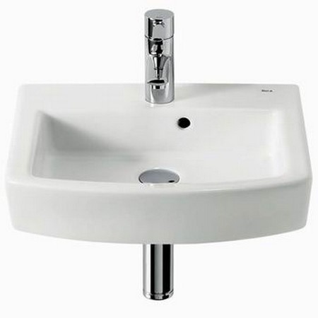 1) Мини-раковина для ванной подвесная Roca Hall 45х38 с одним отверстием под смеситель керамика белая